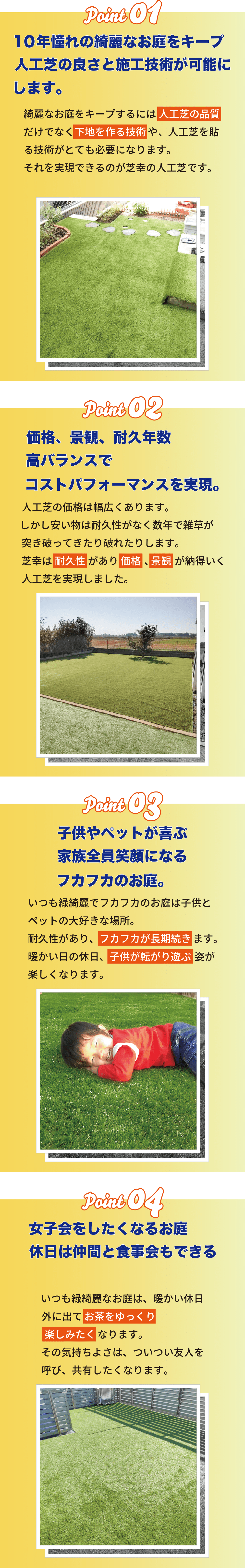 ※人工芝を使用すれば実現する訳ではありません。芝幸が使用するしばんちゅの人工芝と芝幸の施工技術で実現します。